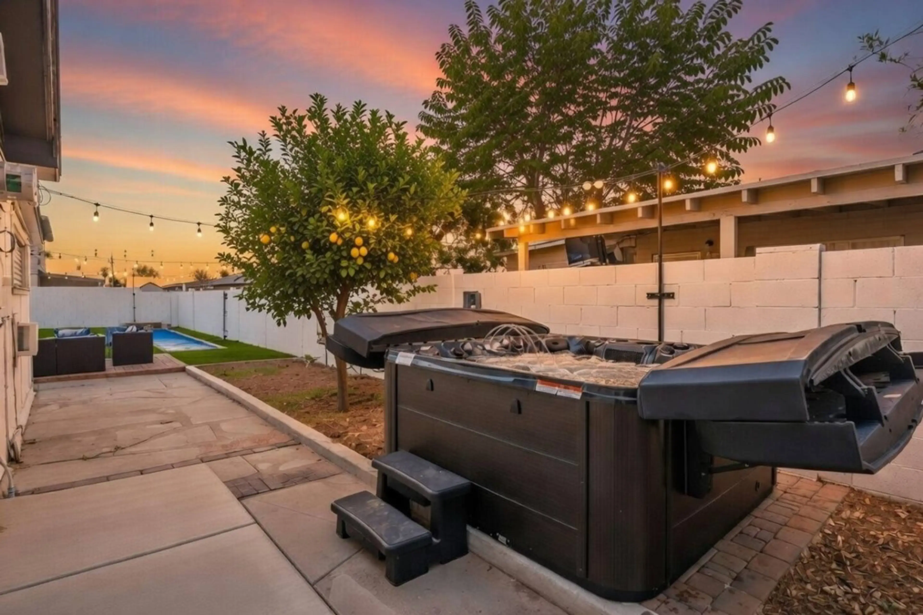 Welcome to The Harmony Haus! Your ultimate Mesa entertainment retreat—minutes from Chicago Cubs Spring Training at Sloan Park. Modern desert design with warm wood accents, fireplace, plush seating, private theater room, music area, and private gym. The Massive backyard has outdoor bowling, corn hole...